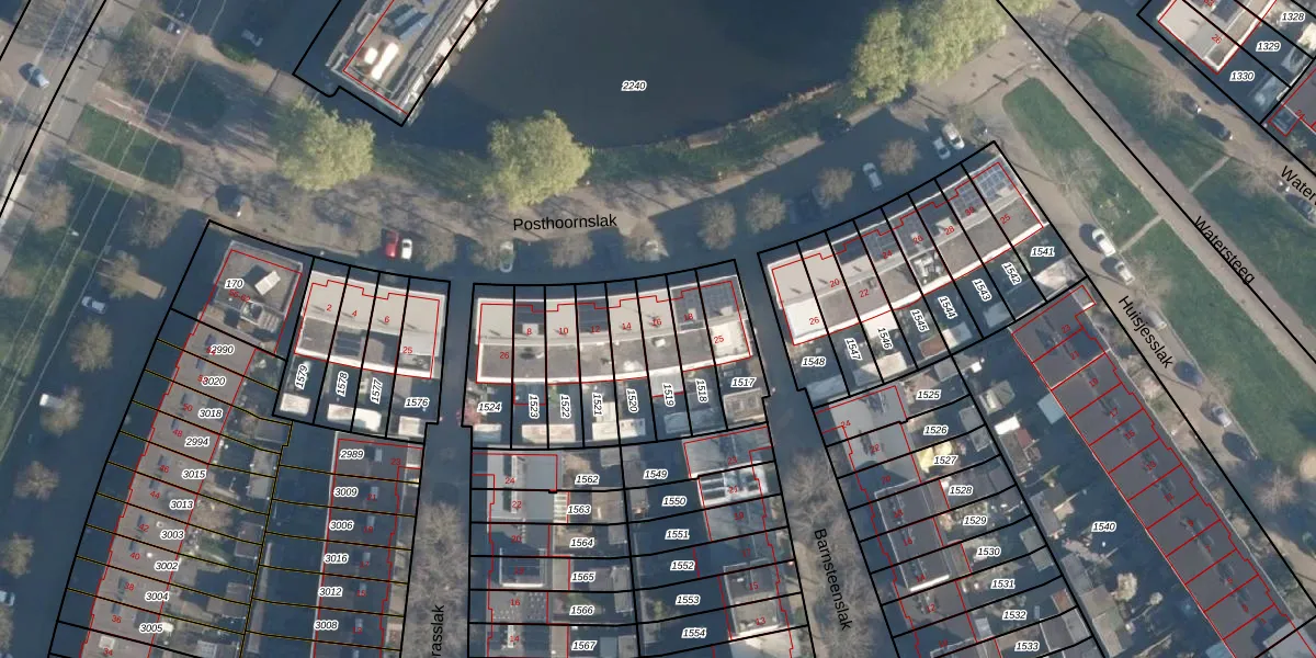 Het perceel waarop Posthoornslak 16 staat heeft een oppervlakte van 127 m². Dit is een middelgroot perceel. De perceeloppervlakte wordt geregistreerd door het Kadaster. Gedetailleerde informatie over de maten van dit perceel kunt u vinden in het rapport Kadastrale kaart met maatvoering van Posthoornslak 16.