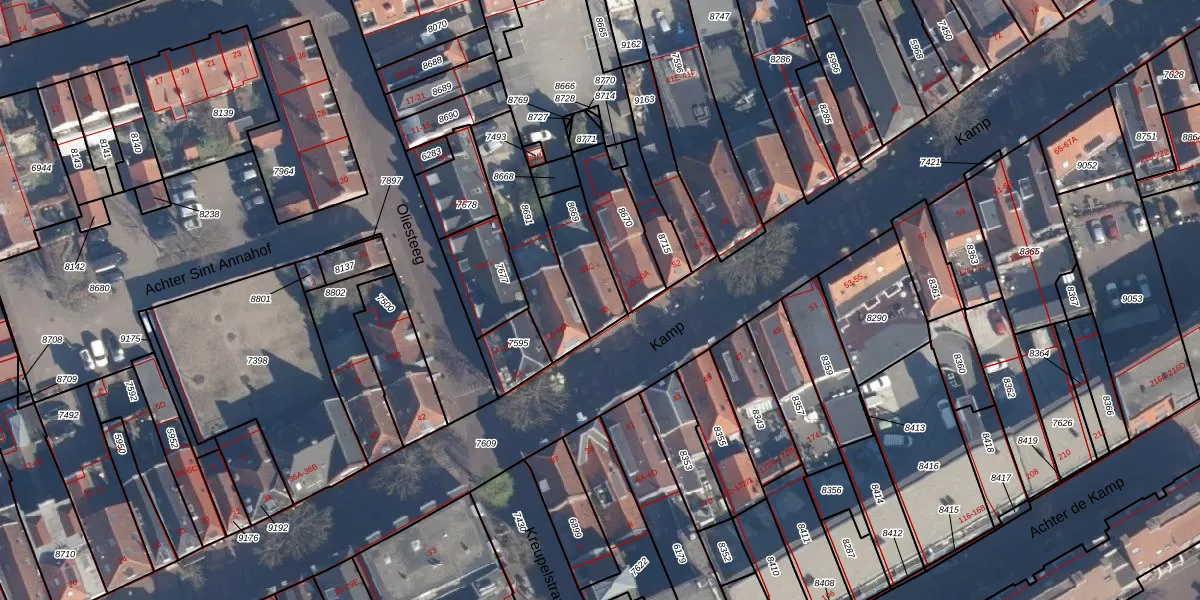 Het adres ligt op het perceel AMF00-E-8669, dat zich in de kadastrale gemeente Amersfoort bevindt. De gemiddelde perceelgrootte in Amersfoort is 960,23 m². Dit perceel is kleiner: de perceeloppervlakte bedraagt 181 m². Het grootste perceel in de kadastrale gemeente is 1,12 km². Het kleinste perceel heeft een oppervlakte van 0 m². Op het perceel liggen in totaal 2 adressen. De laatste wijziging in het de Basisregistratie Kadaster (BRK) was op 06-10-2004.