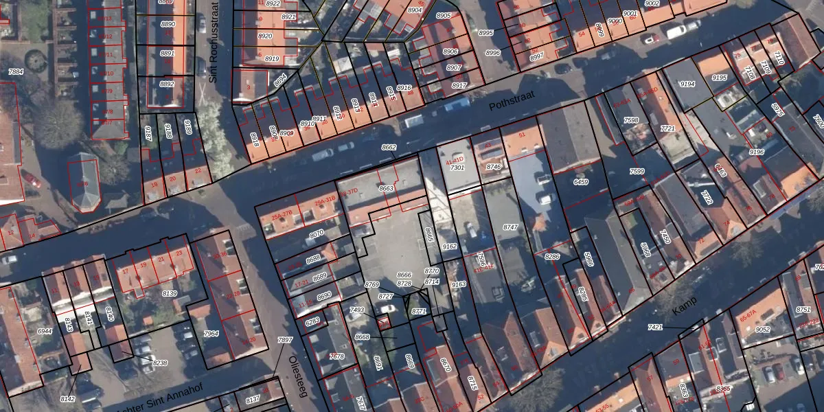Het perceel waarop Pothstraat 37-D staat heeft een oppervlakte van 433 m². Dit is een groot perceel. De perceeloppervlakte wordt geregistreerd door het Kadaster. Gedetailleerde informatie over de maten van dit perceel kunt u vinden in het rapport Kadastrale kaart met maatvoering van Pothstraat 37-D.