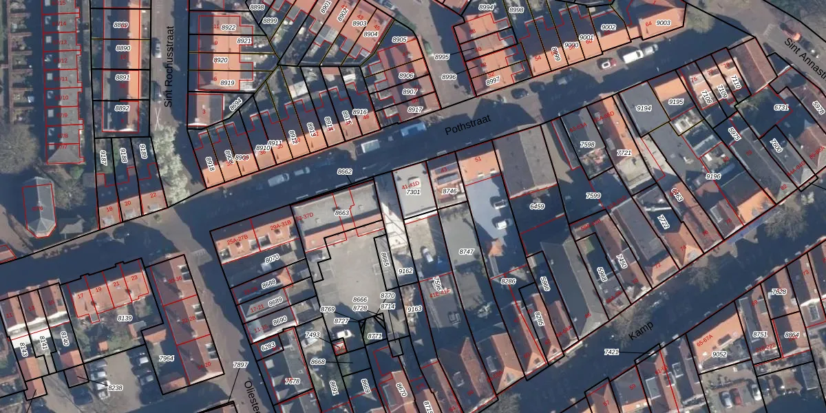 Pothstraat 41-B is gelegen op kadastraal perceel AMF00E7301. Deze kadastrale aanduiding is uniek en wordt gebruikt door het Kadaster om eigendomsrechten en andere zakelijke rechten vast te leggen. Het perceel maakt onderdeel uit van de kadastrale gemeente Amersfoort.