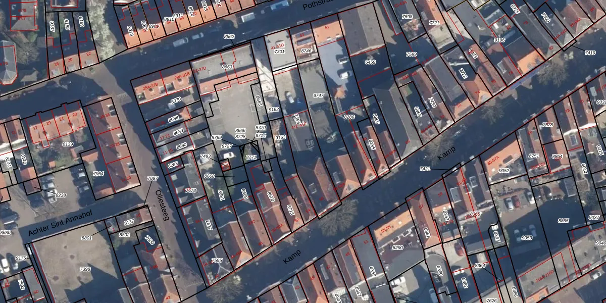 Het perceel waarop Pothstraat 41-E staat heeft een oppervlakte van 445 m². Dit is een groot perceel. De perceeloppervlakte wordt geregistreerd door het Kadaster. Gedetailleerde informatie over de maten van dit perceel kunt u vinden in het rapport Kadastrale kaart met maatvoering van Pothstraat 41-E.
