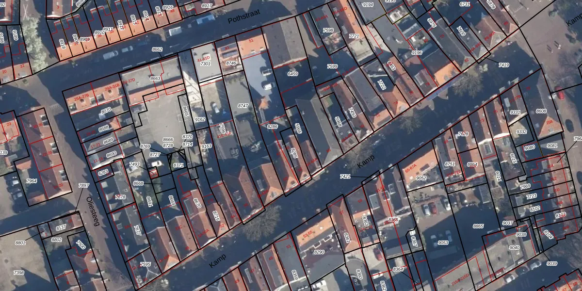 Pothstraat 49 is gelegen op kadastraal perceel AMF00E8285. Deze kadastrale aanduiding is uniek en wordt gebruikt door het Kadaster om eigendomsrechten en andere zakelijke rechten vast te leggen. Het perceel maakt onderdeel uit van de kadastrale gemeente Amersfoort.