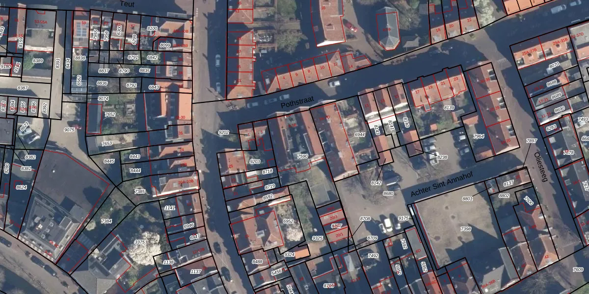 Het perceel waarop Pothstraat 5-E staat heeft een oppervlakte van 465 m². Dit is een groot perceel. De perceeloppervlakte wordt geregistreerd door het Kadaster. Gedetailleerde informatie over de maten van dit perceel kunt u vinden in het rapport Kadastrale kaart met maatvoering van Pothstraat 5-E.