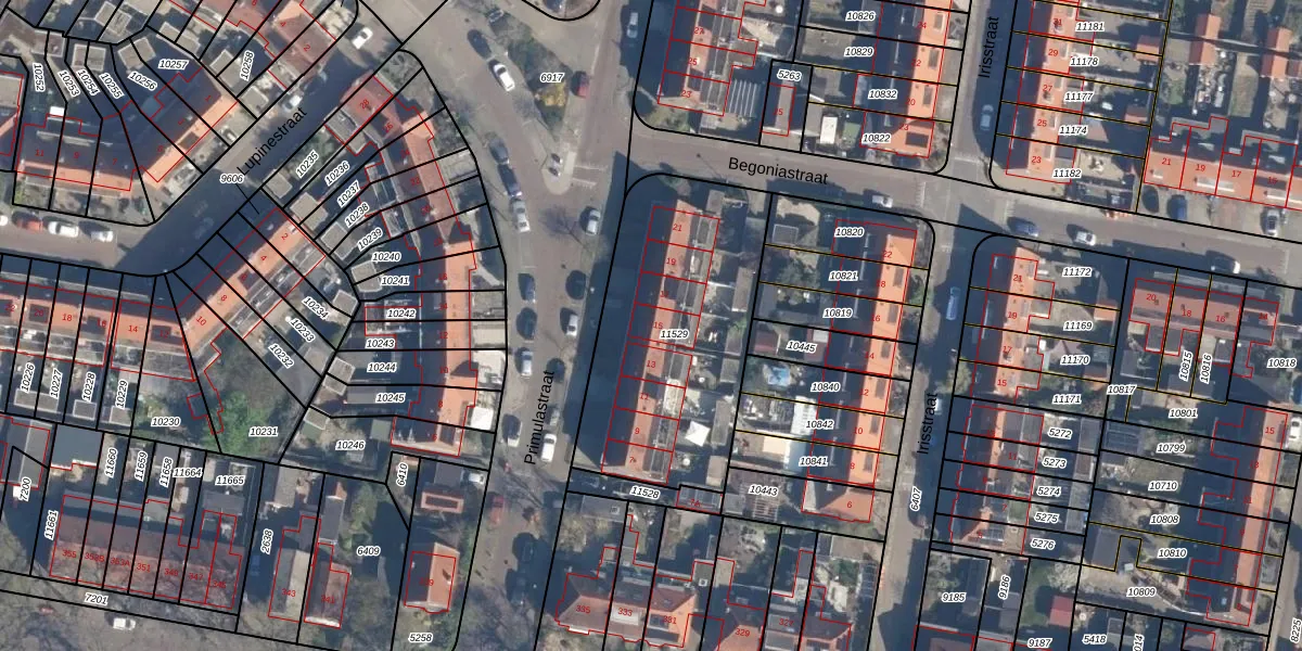 Het perceel waarop Primulastraat 15 staat heeft een oppervlakte van 1078 m². Dit is een zeer groot perceel. De perceeloppervlakte wordt geregistreerd door het Kadaster. Gedetailleerde informatie over de maten van dit perceel kunt u vinden in het rapport Kadastrale kaart met maatvoering van Primulastraat 15.