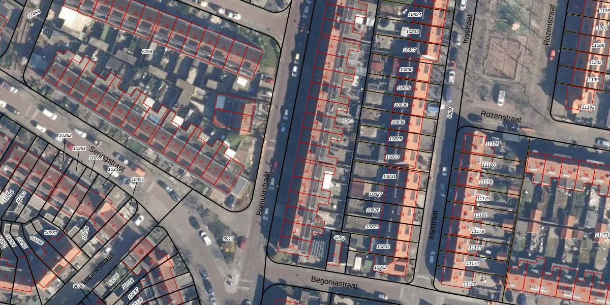Het perceel waarop Primulastraat 35 staat heeft een oppervlakte van 2369 m². Dit is een zeer groot perceel. De perceeloppervlakte wordt geregistreerd door het Kadaster. Gedetailleerde informatie over de maten van dit perceel kunt u vinden in het rapport Kadastrale kaart met maatvoering van Primulastraat 35.