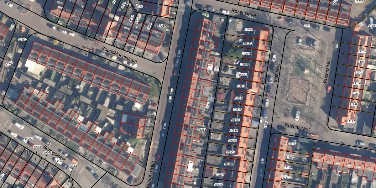 Het perceel waarop Primulastraat 47 staat heeft een oppervlakte van 2369 m². Dit is een zeer groot perceel. De perceeloppervlakte wordt geregistreerd door het Kadaster. Gedetailleerde informatie over de maten van dit perceel kunt u vinden in het rapport Kadastrale kaart met maatvoering van Primulastraat 47.