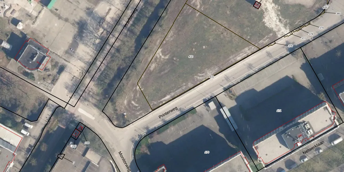 Printerweg 117 is gelegen op kadastraal perceel AMF00M432. Deze kadastrale aanduiding is uniek en wordt gebruikt door het Kadaster om eigendomsrechten en andere zakelijke rechten vast te leggen. Het perceel maakt onderdeel uit van de kadastrale gemeente Amersfoort.