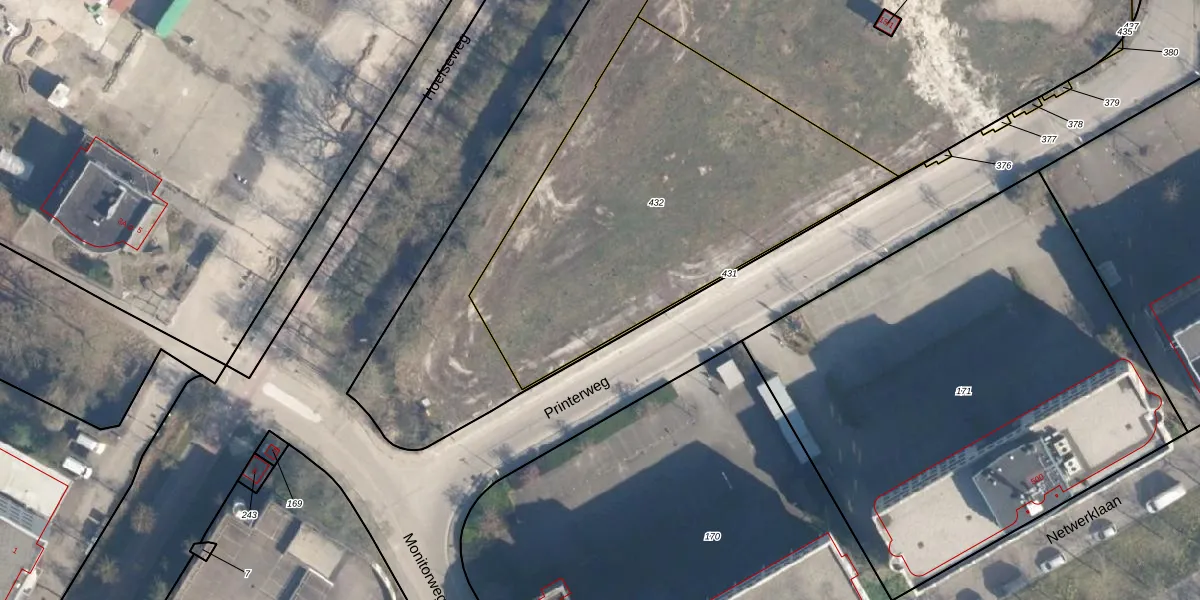 Printerweg 121 is gelegen op kadastraal perceel AMF00M432. Deze kadastrale aanduiding is uniek en wordt gebruikt door het Kadaster om eigendomsrechten en andere zakelijke rechten vast te leggen. Het perceel maakt onderdeel uit van de kadastrale gemeente Amersfoort.