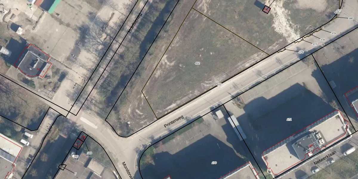 Printerweg 155 is gelegen op kadastraal perceel AMF00M432. Deze kadastrale aanduiding is uniek en wordt gebruikt door het Kadaster om eigendomsrechten en andere zakelijke rechten vast te leggen. Het perceel maakt onderdeel uit van de kadastrale gemeente Amersfoort.
