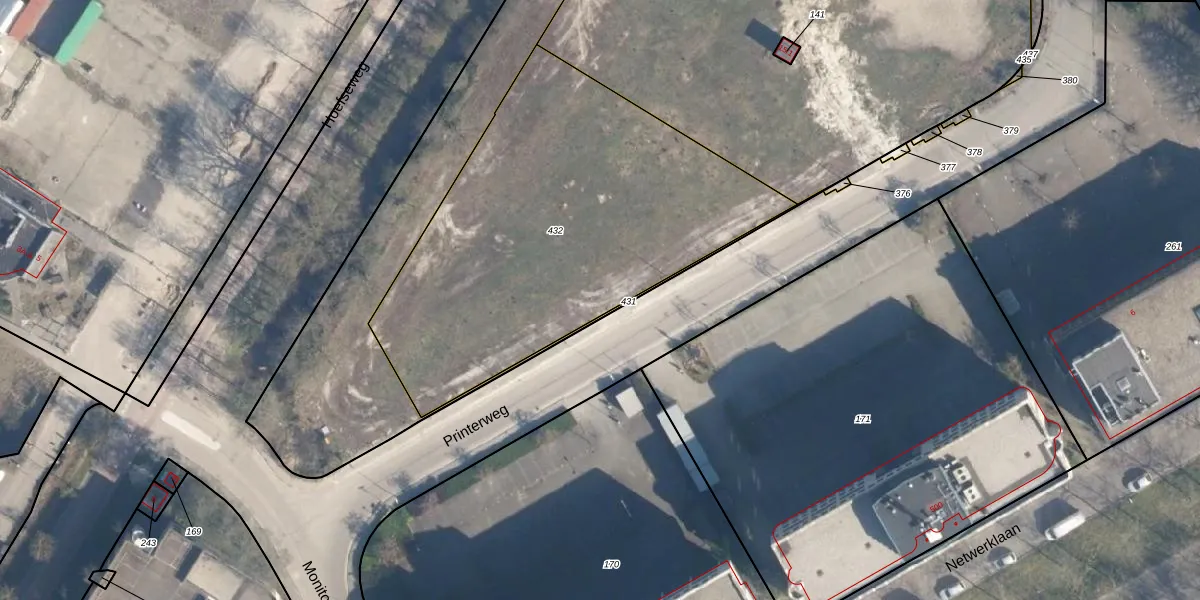 Printerweg 181 is gelegen op kadastraal perceel AMF00M432. Deze kadastrale aanduiding is uniek en wordt gebruikt door het Kadaster om eigendomsrechten en andere zakelijke rechten vast te leggen. Het perceel maakt onderdeel uit van de kadastrale gemeente Amersfoort.