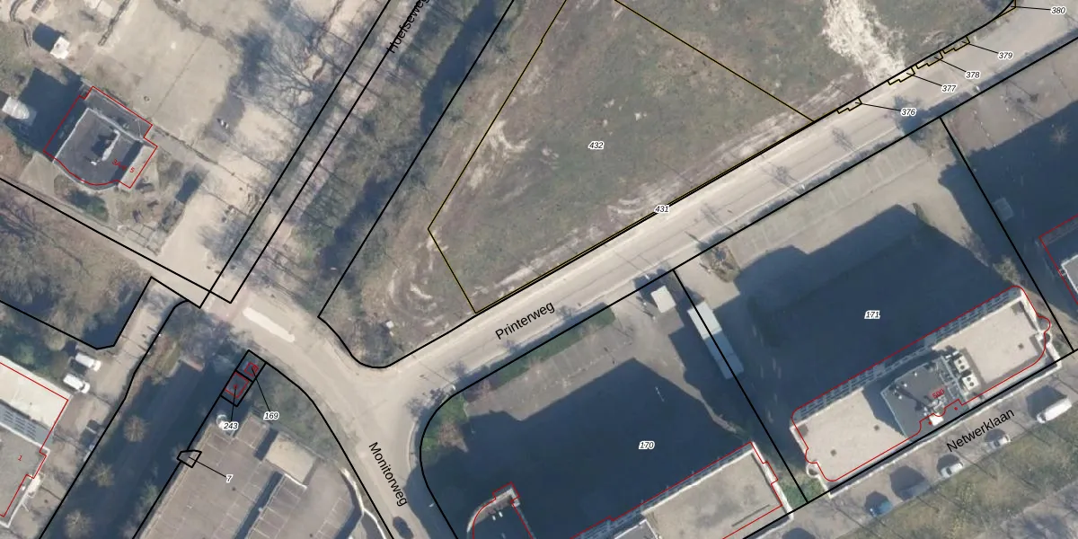 Printerweg 3 is gelegen op kadastraal perceel AMF00M432. Deze kadastrale aanduiding is uniek en wordt gebruikt door het Kadaster om eigendomsrechten en andere zakelijke rechten vast te leggen. Het perceel maakt onderdeel uit van de kadastrale gemeente Amersfoort.