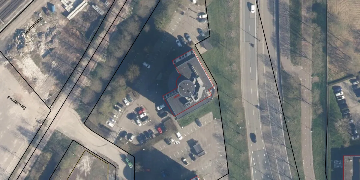 Printerweg 48 is gelegen op kadastraal perceel AMF00M173. Deze kadastrale aanduiding is uniek en wordt gebruikt door het Kadaster om eigendomsrechten en andere zakelijke rechten vast te leggen. Het perceel maakt onderdeel uit van de kadastrale gemeente Amersfoort.