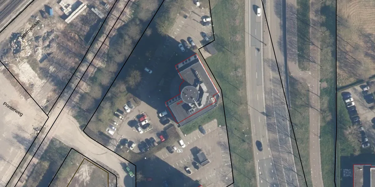 Printerweg 54 is gelegen op kadastraal perceel AMF00M173. Deze kadastrale aanduiding is uniek en wordt gebruikt door het Kadaster om eigendomsrechten en andere zakelijke rechten vast te leggen. Het perceel maakt onderdeel uit van de kadastrale gemeente Amersfoort.