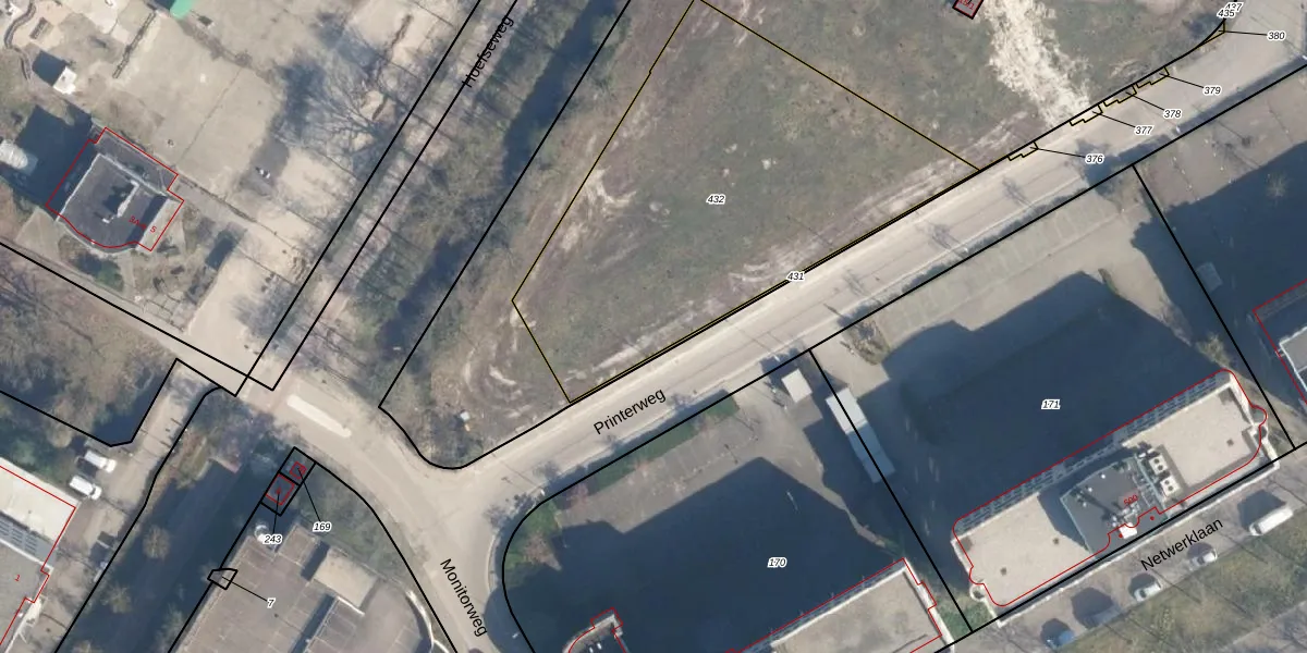 Het perceel waarop Printerweg 63 staat heeft een oppervlakte van 2032 m². Dit is een zeer groot perceel. De perceeloppervlakte wordt geregistreerd door het Kadaster. Gedetailleerde informatie over de maten van dit perceel kunt u vinden in het rapport Kadastrale kaart met maatvoering van Printerweg 63.