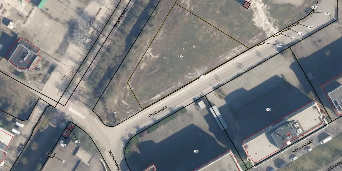 Het perceel waarop Printerweg 73 staat heeft een oppervlakte van 2032 m². Dit is een zeer groot perceel. De perceeloppervlakte wordt geregistreerd door het Kadaster. Gedetailleerde informatie over de maten van dit perceel kunt u vinden in het rapport Kadastrale kaart met maatvoering van Printerweg 73.