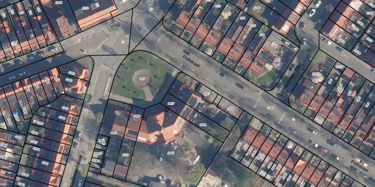 Het perceel waarop Pullstraat 1 staat heeft een oppervlakte van 394 m². Dit is een groot perceel. De perceeloppervlakte wordt geregistreerd door het Kadaster. Gedetailleerde informatie over de maten van dit perceel kunt u vinden in het rapport Kadastrale kaart met maatvoering van Pullstraat 1.