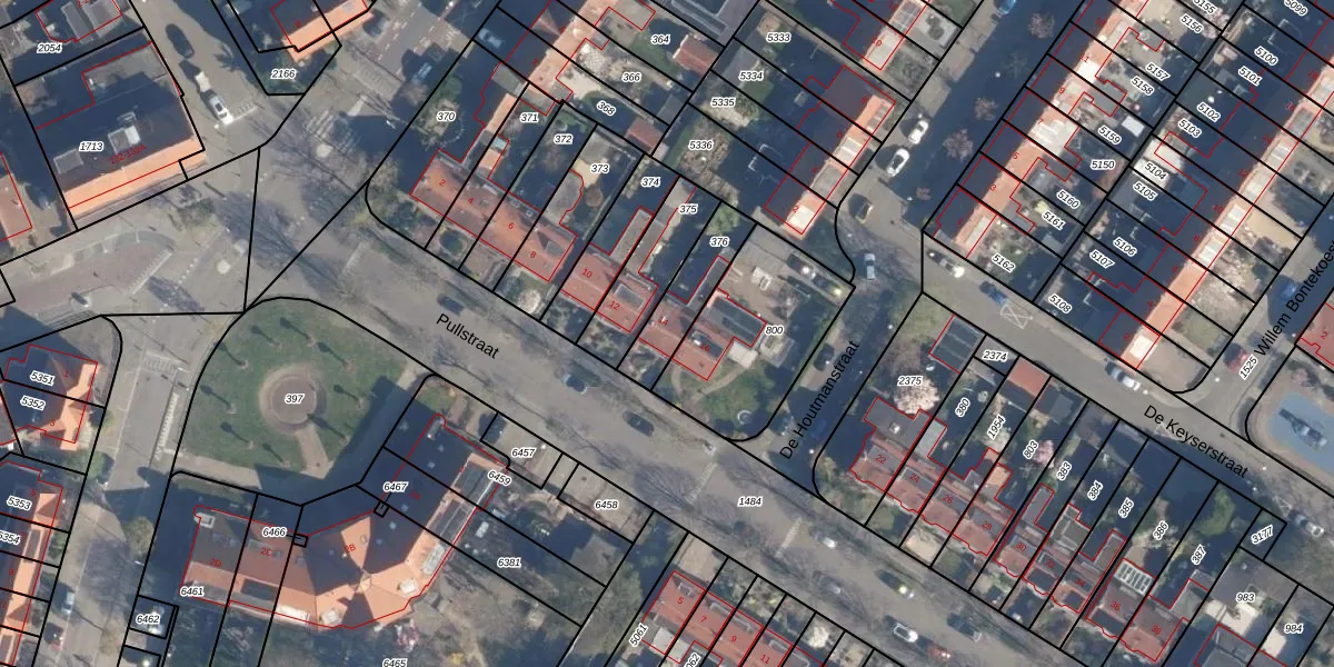 Het perceel waarop Pullstraat 14 staat heeft een oppervlakte van 185 m². Dit is een middelgroot perceel. De perceeloppervlakte wordt geregistreerd door het Kadaster. Gedetailleerde informatie over de maten van dit perceel kunt u vinden in het rapport Kadastrale kaart met maatvoering van Pullstraat 14.