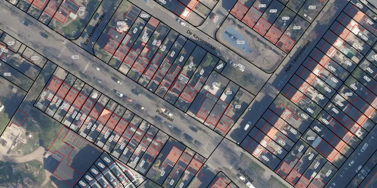 Gebruik de zoekbalk of klik op een perceel voor informatie over de adressen binnen dit perceel.