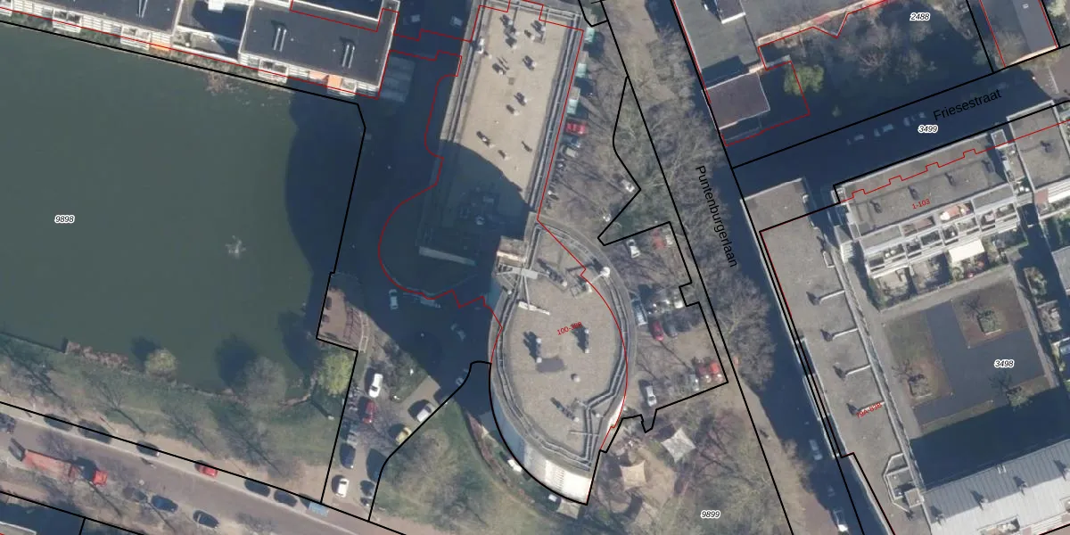 Het perceel waarop Puntenburgerlaan 232 staat heeft een oppervlakte van 9421 m². Dit is een zeer groot perceel. De perceeloppervlakte wordt geregistreerd door het Kadaster. Gedetailleerde informatie over de maten van dit perceel kunt u vinden in het rapport Kadastrale kaart met maatvoering van Puntenburgerlaan 232.
