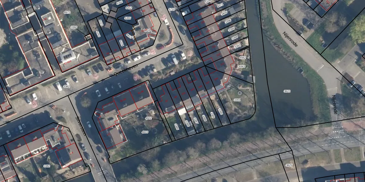 Het perceel waarop Queekhoven 101 staat heeft een oppervlakte van 156 m². Dit is een middelgroot perceel. De perceeloppervlakte wordt geregistreerd door het Kadaster. Gedetailleerde informatie over de maten van dit perceel kunt u vinden in het rapport Kadastrale kaart met maatvoering van Queekhoven 101.