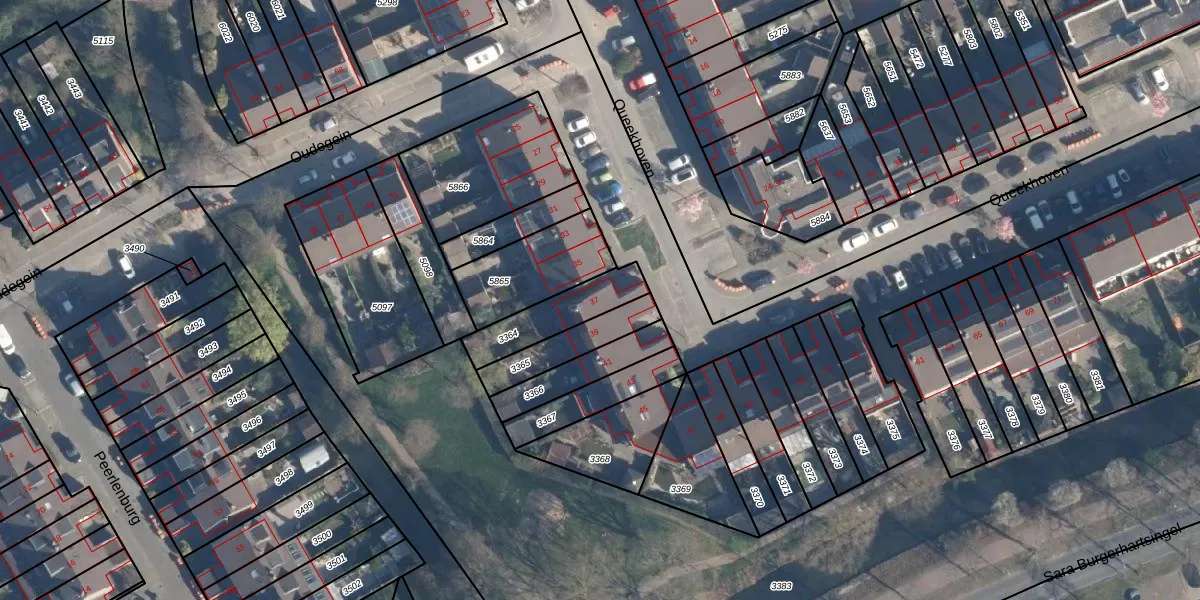 Het perceel waarop Queekhoven 37 staat heeft een oppervlakte van 191 m². Dit is een middelgroot perceel. De perceeloppervlakte wordt geregistreerd door het Kadaster. Gedetailleerde informatie over de maten van dit perceel kunt u vinden in het rapport Kadastrale kaart met maatvoering van Queekhoven 37.