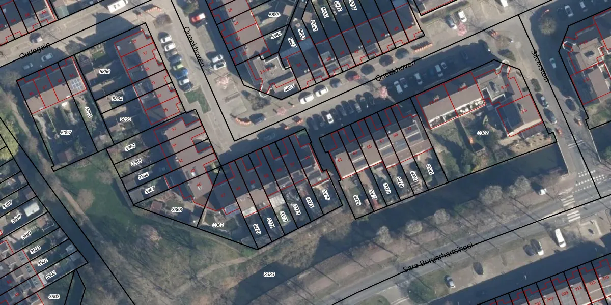 Het perceel waarop Queekhoven 59 staat heeft een oppervlakte van 181 m². Dit is een middelgroot perceel. De perceeloppervlakte wordt geregistreerd door het Kadaster. Gedetailleerde informatie over de maten van dit perceel kunt u vinden in het rapport Kadastrale kaart met maatvoering van Queekhoven 59.