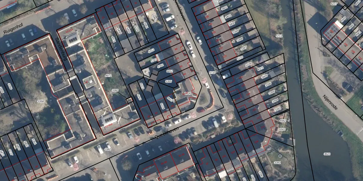 Het perceel waarop Queekhoven 78 staat heeft een oppervlakte van 216 m². Dit is een middelgroot perceel. De perceeloppervlakte wordt geregistreerd door het Kadaster. Gedetailleerde informatie over de maten van dit perceel kunt u vinden in het rapport Kadastrale kaart met maatvoering van Queekhoven 78.