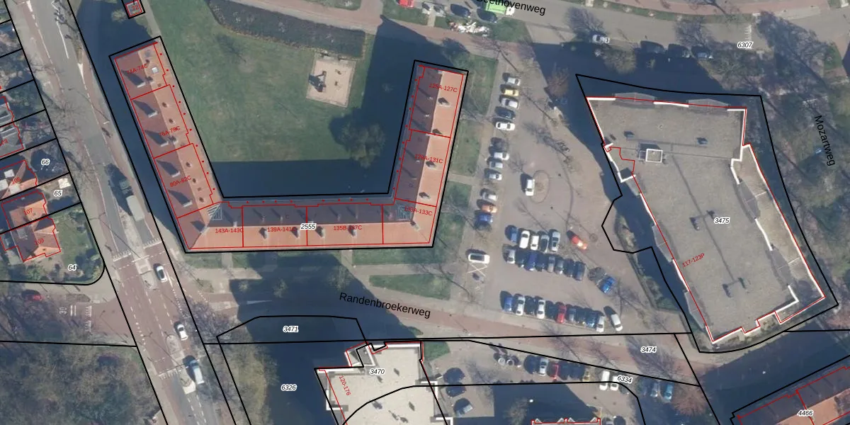 Randenbroekerweg 133-B is gelegen op kadastraal perceel AMF00G2555. Deze kadastrale aanduiding is uniek en wordt gebruikt door het Kadaster om eigendomsrechten en andere zakelijke rechten vast te leggen. Het perceel maakt onderdeel uit van de kadastrale gemeente Amersfoort.