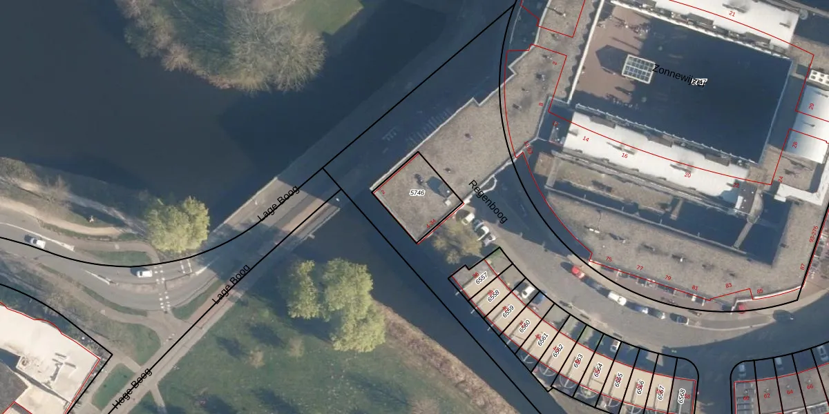 Regenboog 28 is gelegen op kadastraal perceel AMF00O5746. Deze kadastrale aanduiding is uniek en wordt gebruikt door het Kadaster om eigendomsrechten en andere zakelijke rechten vast te leggen. Het perceel maakt onderdeel uit van de kadastrale gemeente Amersfoort.