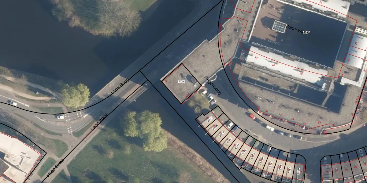 Regenboog 32 is gelegen op kadastraal perceel AMF00O5746. Deze kadastrale aanduiding is uniek en wordt gebruikt door het Kadaster om eigendomsrechten en andere zakelijke rechten vast te leggen. Het perceel maakt onderdeel uit van de kadastrale gemeente Amersfoort.