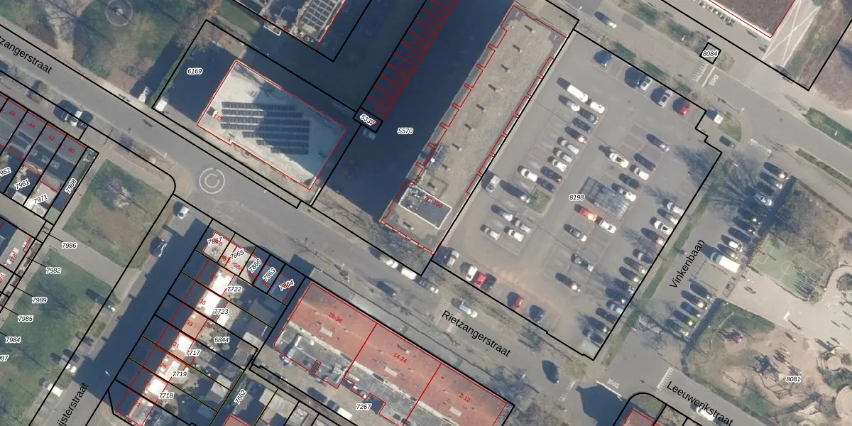 Het perceel waarop Rietzangerstraat 19 staat heeft een oppervlakte van 2249 m². Dit is een zeer groot perceel. De perceeloppervlakte wordt geregistreerd door het Kadaster. Gedetailleerde informatie over de maten van dit perceel kunt u vinden in het rapport Kadastrale kaart met maatvoering van Rietzangerstraat 19.