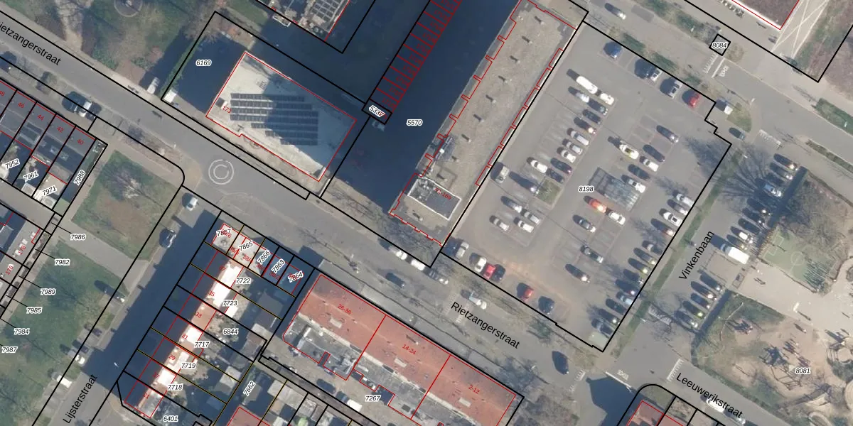Het perceel waarop Rietzangerstraat 41 staat heeft een oppervlakte van 2249 m². Dit is een zeer groot perceel. De perceeloppervlakte wordt geregistreerd door het Kadaster. Gedetailleerde informatie over de maten van dit perceel kunt u vinden in het rapport Kadastrale kaart met maatvoering van Rietzangerstraat 41.