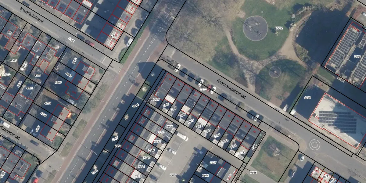 Het perceel waarop Rietzangerstraat 56 staat heeft een oppervlakte van 108 m². Dit is een middelgroot perceel. De perceeloppervlakte wordt geregistreerd door het Kadaster. Gedetailleerde informatie over de maten van dit perceel kunt u vinden in het rapport Kadastrale kaart met maatvoering van Rietzangerstraat 56.
