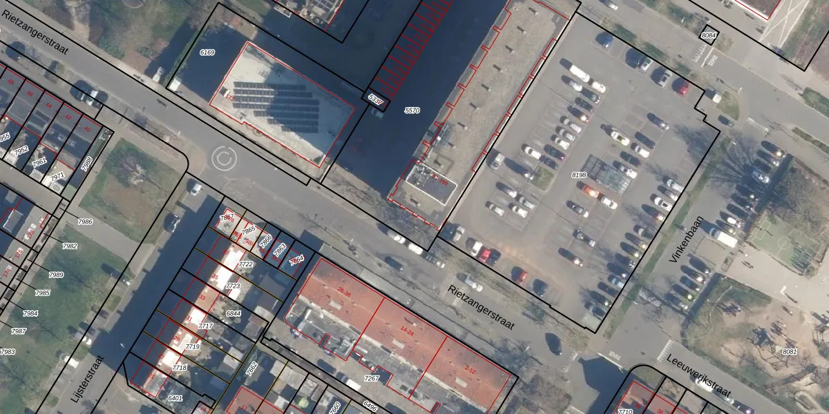 Het perceel waarop Rietzangerstraat 77 staat heeft een oppervlakte van 2249 m². Dit is een zeer groot perceel. De perceeloppervlakte wordt geregistreerd door het Kadaster. Gedetailleerde informatie over de maten van dit perceel kunt u vinden in het rapport Kadastrale kaart met maatvoering van Rietzangerstraat 77.