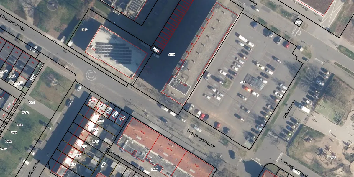 Rietzangerstraat 87 is gelegen op kadastraal perceel AMF00A5570. Deze kadastrale aanduiding is uniek en wordt gebruikt door het Kadaster om eigendomsrechten en andere zakelijke rechten vast te leggen. Het perceel maakt onderdeel uit van de kadastrale gemeente Amersfoort.