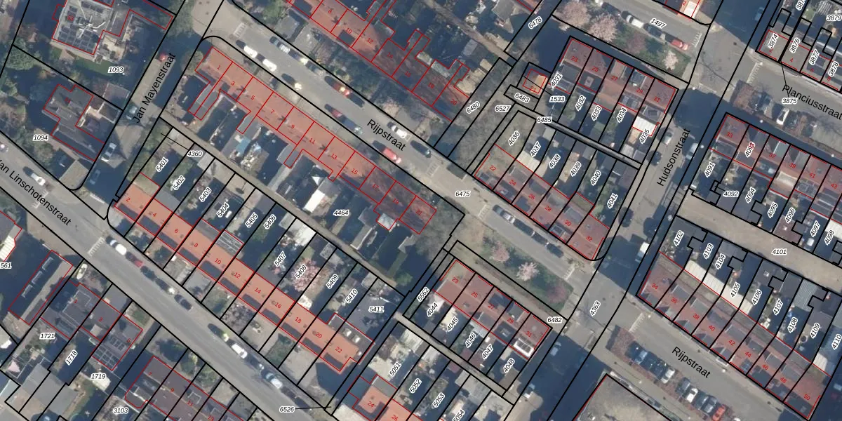 Het perceel waarop Rijpstraat 21 staat heeft een oppervlakte van 1785 m². Dit is een zeer groot perceel. De perceeloppervlakte wordt geregistreerd door het Kadaster. Gedetailleerde informatie over de maten van dit perceel kunt u vinden in het rapport Kadastrale kaart met maatvoering van Rijpstraat 21.