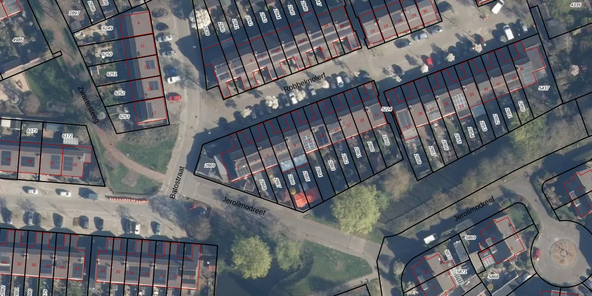 Gebruik de zoekbalk of klik op een perceel voor informatie over de adressen binnen dit perceel.