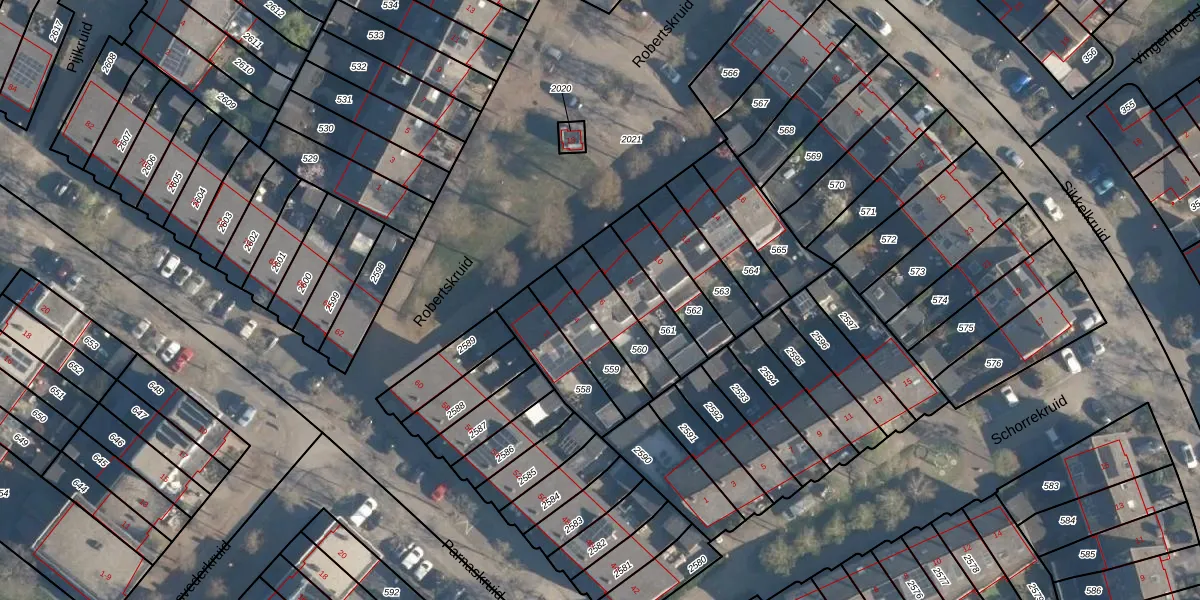 Robertskruid 6 is gelegen op kadastraal perceel AMF00P560. Deze kadastrale aanduiding is uniek en wordt gebruikt door het Kadaster om eigendomsrechten en andere zakelijke rechten vast te leggen. Het perceel maakt onderdeel uit van de kadastrale gemeente Amersfoort.