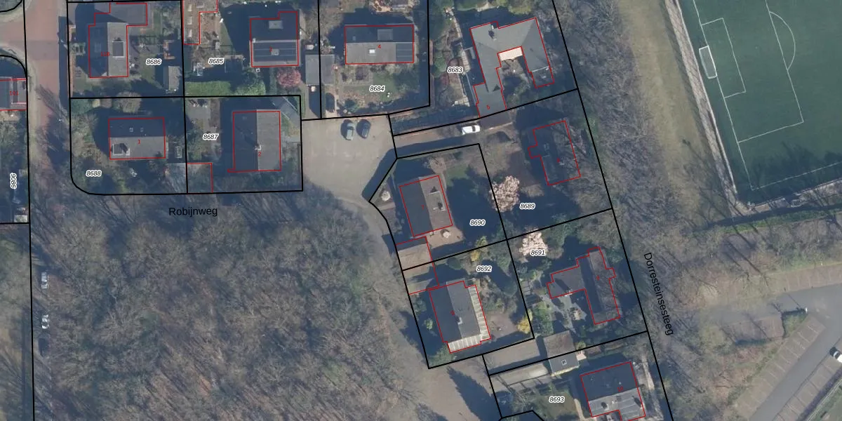 Gebruik de zoekbalk of klik op een perceel voor informatie over de adressen binnen dit perceel.