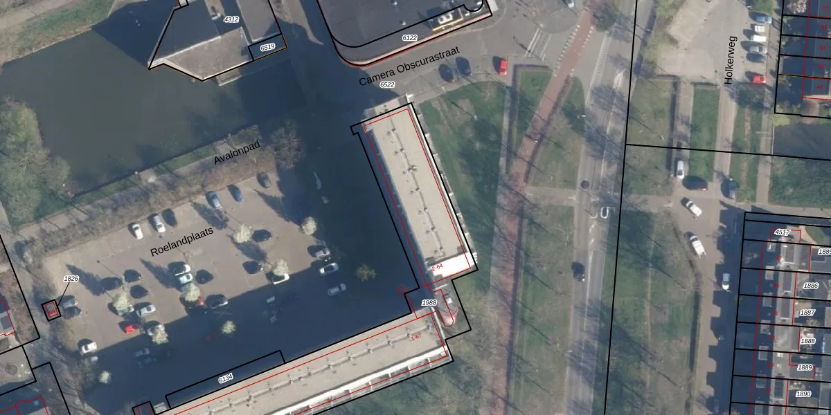 Het perceel waarop Roelandplaats 20 staat heeft een oppervlakte van 1842 m². Dit is een zeer groot perceel. De perceeloppervlakte wordt geregistreerd door het Kadaster. Gedetailleerde informatie over de maten van dit perceel kunt u vinden in het rapport Kadastrale kaart met maatvoering van Roelandplaats 20.