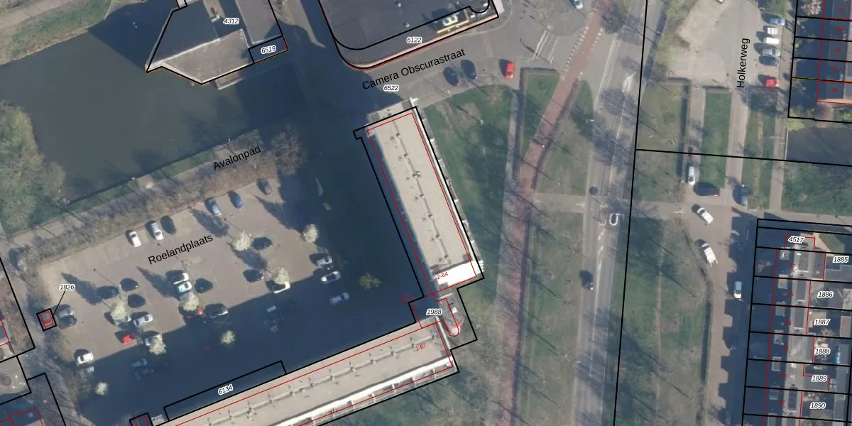 Het perceel waarop Roelandplaats 24 staat heeft een oppervlakte van 1842 m². Dit is een zeer groot perceel. De perceeloppervlakte wordt geregistreerd door het Kadaster. Gedetailleerde informatie over de maten van dit perceel kunt u vinden in het rapport Kadastrale kaart met maatvoering van Roelandplaats 24.