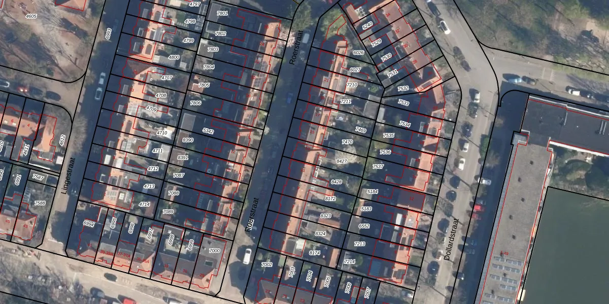 Gebruik de zoekbalk of klik op een perceel voor informatie over de adressen binnen dit perceel.