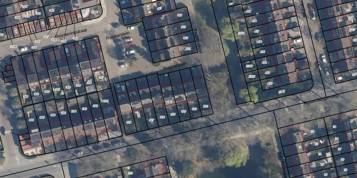 Het perceel waarop Rogaarplein 7 staat heeft een oppervlakte van 176 m². Dit is een middelgroot perceel. De perceeloppervlakte wordt geregistreerd door het Kadaster. Gedetailleerde informatie over de maten van dit perceel kunt u vinden in het rapport Kadastrale kaart met maatvoering van Rogaarplein 7.