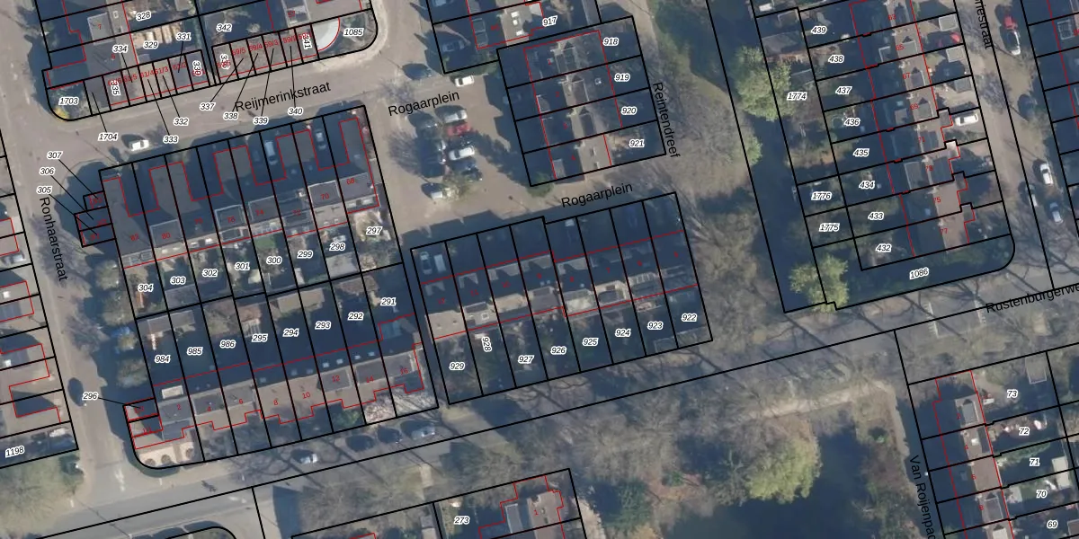 Het perceel waarop Rogaarplein 9 staat heeft een oppervlakte van 186 m². Dit is een middelgroot perceel. De perceeloppervlakte wordt geregistreerd door het Kadaster. Gedetailleerde informatie over de maten van dit perceel kunt u vinden in het rapport Kadastrale kaart met maatvoering van Rogaarplein 9.