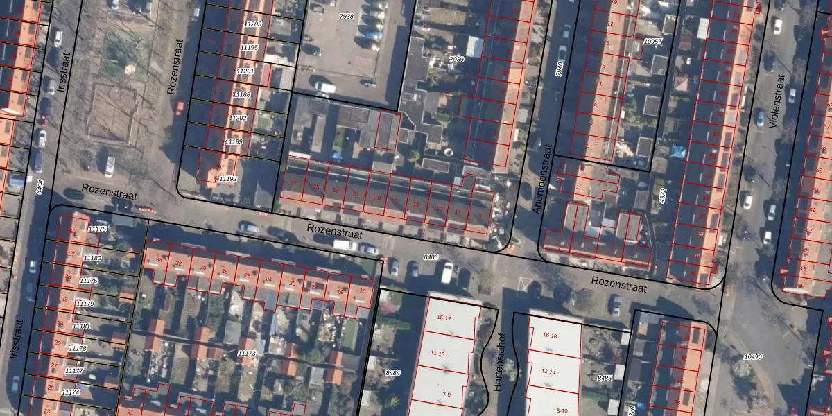 Het perceel waarop Rozenstraat 15 staat heeft een oppervlakte van 3037 m². Dit is een zeer groot perceel. De perceeloppervlakte wordt geregistreerd door het Kadaster. Gedetailleerde informatie over de maten van dit perceel kunt u vinden in het rapport Kadastrale kaart met maatvoering van Rozenstraat 15.