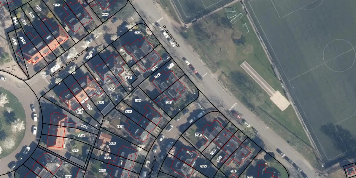 Het perceel waarop Rubensstraat 83 staat heeft een oppervlakte van 331 m². Dit is een groot perceel. De perceeloppervlakte wordt geregistreerd door het Kadaster. Gedetailleerde informatie over de maten van dit perceel kunt u vinden in het rapport Kadastrale kaart met maatvoering van Rubensstraat 83.