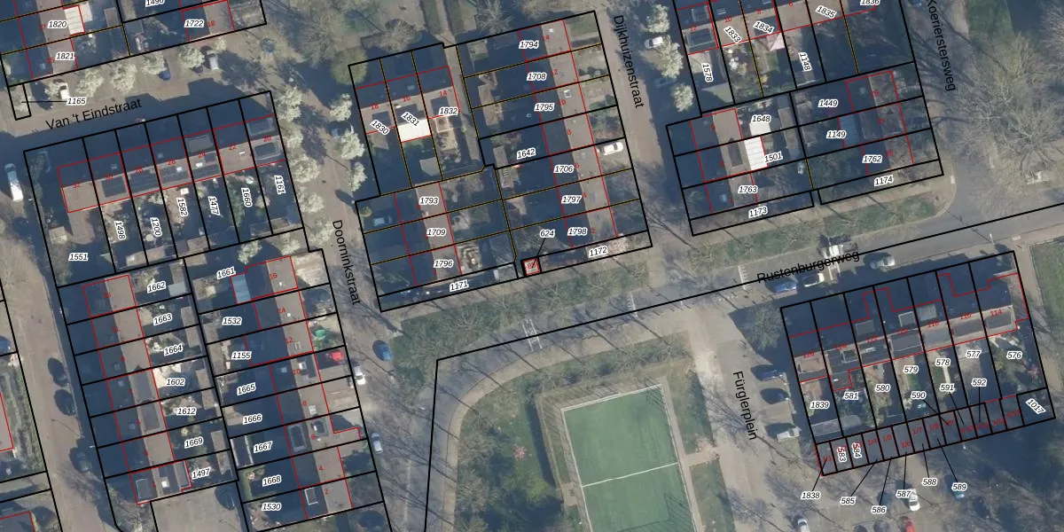 Rustenburgerweg 83 is gelegen op kadastraal perceel AMF00L624. Deze kadastrale aanduiding is uniek en wordt gebruikt door het Kadaster om eigendomsrechten en andere zakelijke rechten vast te leggen. Het perceel maakt onderdeel uit van de kadastrale gemeente Amersfoort.