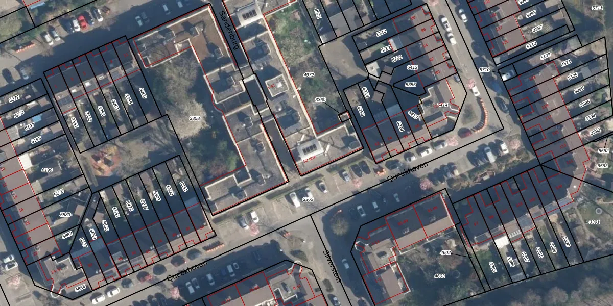Het perceel waarop Sandenburg 1 staat heeft een oppervlakte van 1475 m². Dit is een zeer groot perceel. De perceeloppervlakte wordt geregistreerd door het Kadaster. Gedetailleerde informatie over de maten van dit perceel kunt u vinden in het rapport Kadastrale kaart met maatvoering van Sandenburg 1.