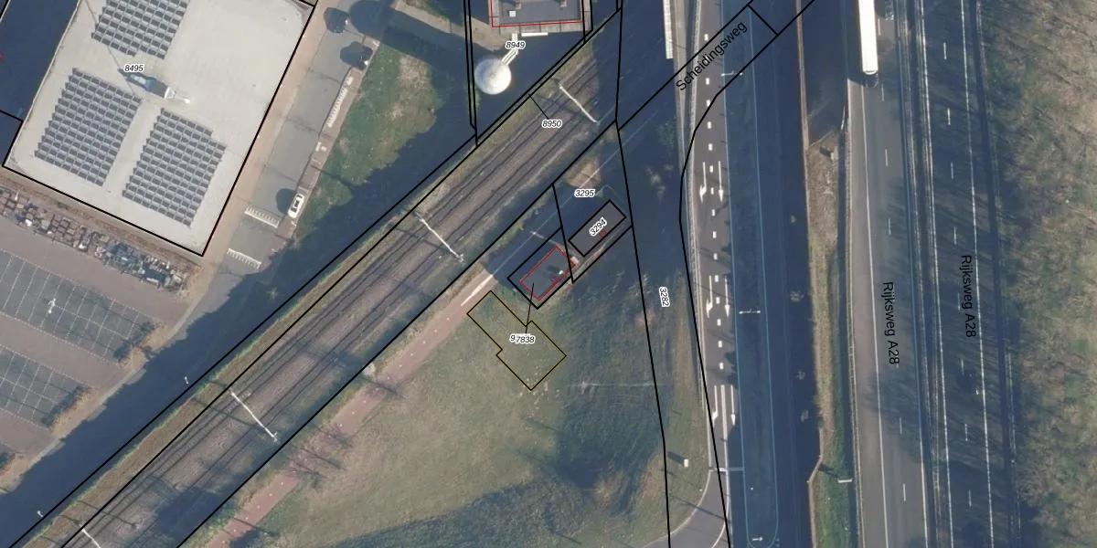 Het adres is gelegen op perceel 7838 in de sectie B en de kadastrale gemeente Hoogland. De kadastrale aanduiding is aldus HLD02-B-7838. Het perceel is kleiner dan gemiddeld in Hoogland. Het perceel is 85 m² groot, terwijl het gemiddelde ligt op 1507,48 m². Het kleinste perceel in de kadastrale gemeente is 0 m² groot. De grootste perceeloppervlakte is 80,7 ha. Op het perceel bevinden zich geen andere adressen. De laatste wijziging in het de Basisregistratie Kadaster (BRK) was op 21-02-2020.