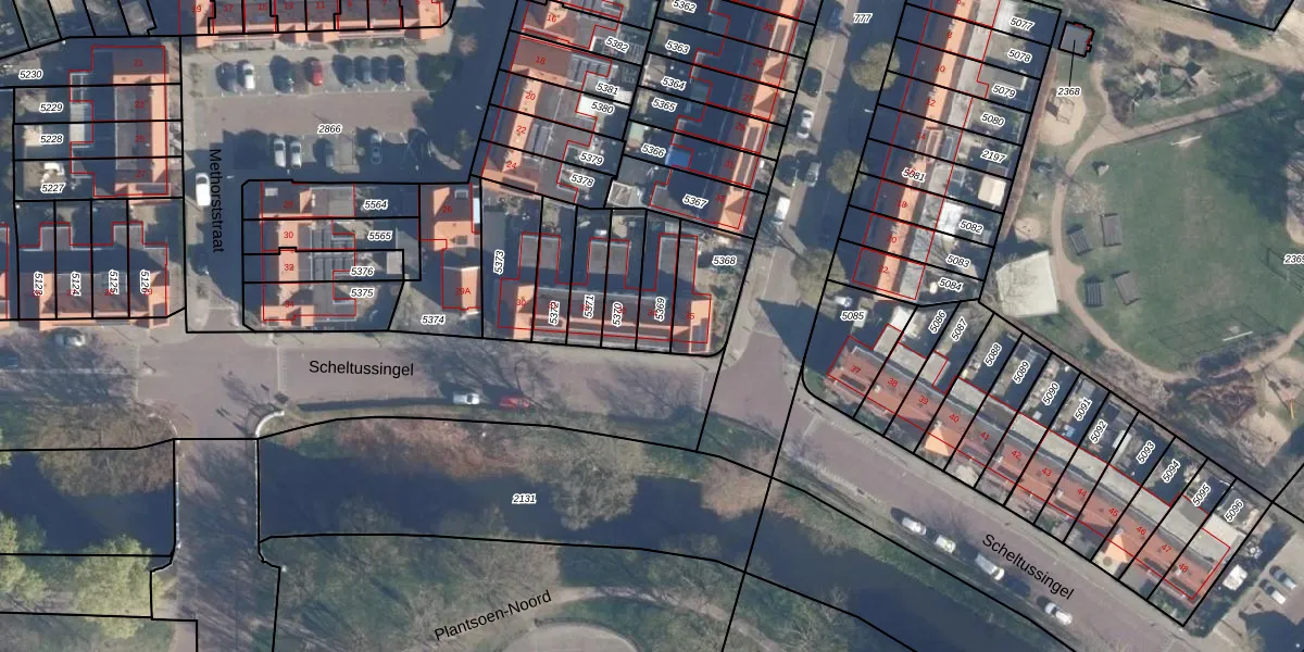 Gebruik de zoekbalk of klik op een perceel voor informatie over de adressen binnen dit perceel.